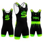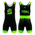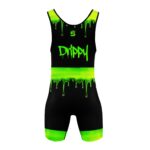 The Drippy Glow Wrestling Singlet from Supreme Singlets delivers a bold and aggressive look with a neon drip design that stands out instantly.