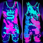 The Glo Splash Glow Wrestling Singlet from Supreme Singlets brings explosive color and energy with a bold neon paint splatter design built to stand out.