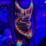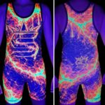 The Inferno Glow Wrestling Singlet is printed using high-quality fluorescent inks designed to react under UV lighting and blacklight environments.