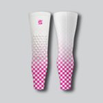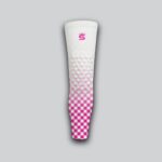 Featuring a clean white-to-pink gradient with a bold checkered fade pattern, this sleeve is designed to stand out while delivering serious performance. Built to securely hold your kneepad in place, it provides compression support and protection during intense matches and training.